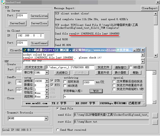 開發(fā)板和SocketDlgTest程序、串口通信: