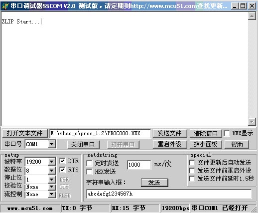 1. 檢查串口連接:運(yùn)行“\工具\(yùn)sscom\sscomv20.exe”,修改波特率為19200,打開開發(fā)板電源開關(guān),此時應(yīng)該看到有“ZLIP