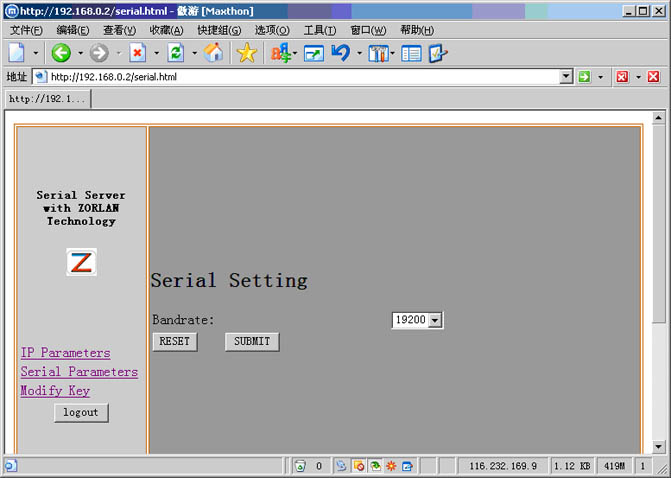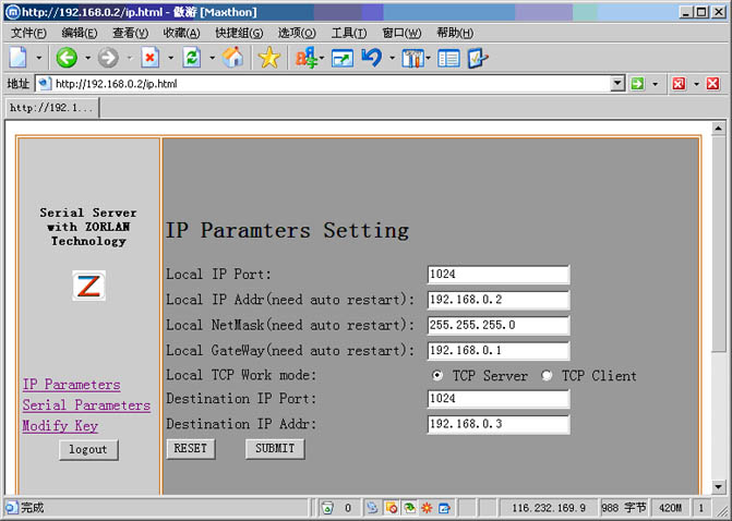 基于ZLIP和ZLWeb的串口服務(wù)器——ZLSerialServer,提供了串口RS232和以太網(wǎng)之間的相互數(shù)據(jù)轉(zhuǎn)化功能,并且用戶可以通過Web瀏覽器修改波特率、IP地址、端口、登陸密碼等參數(shù)。在線咨詢