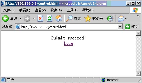 Green LED和RED LED都選擇On,點擊submit,瀏覽器顯示反饋頁面: