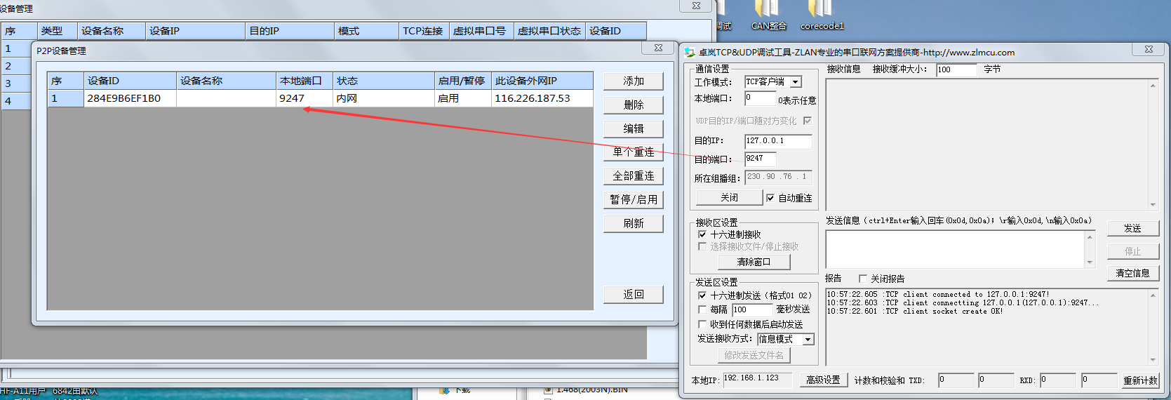 如果使用IP和端口的方式用TCP客戶端去通訊,直接訪問本機(jī)IP127.0.0.1以及P2P模擬的本地端口即可。