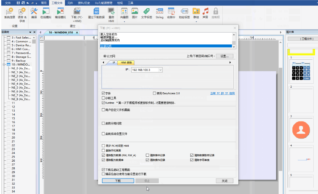 4.下載完成后,就可以通過觸摸屏控制網(wǎng)口風(fēng)機。