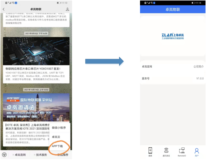 1. 首先在微信中關(guān)注卓嵐公眾號,在新品推薦中,選擇APP下載,下載完成后,運(yùn)行卓嵐APP。如圖4。