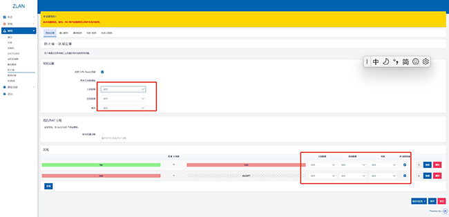 第二步 點擊左側(cè)菜單欄:防火墻——常規(guī)設置 按照下圖全部開起來。