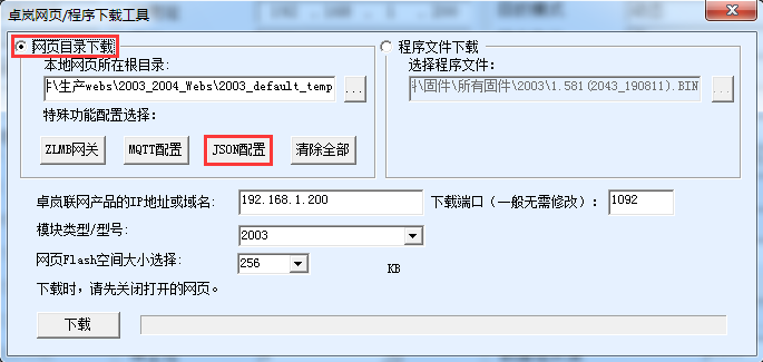 2.選擇網(wǎng)頁目錄下載,選擇一個空的目錄,用于保存配置,然后點擊JSON配置。