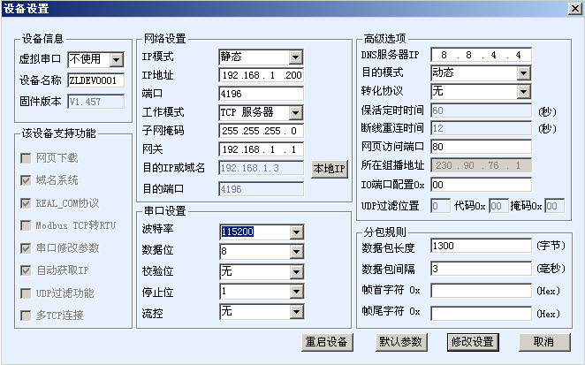 4.修改指定的串口服務器模塊的任何一個參數(shù)。