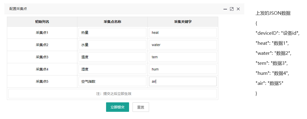 組態(tài)界面的數(shù)據(jù)和JSON關(guān)鍵詞相關(guān)聯(lián),而JSON關(guān)鍵詞又可以通過zlvircom對網(wǎng)關(guān)的配置和Modbus RTU設(shè)備、DLT-645設(shè)備、自定義串口設(shè)備的某個寄存器相關(guān)聯(lián)。例如上圖的JSON數(shù)據(jù)為: