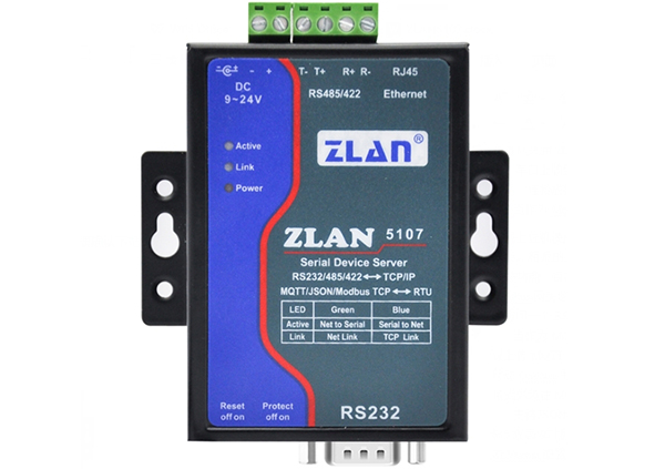 ZLAN5107是一款專門為工業(yè)環(huán)境設(shè)計的RS232/485/422設(shè)備數(shù)據(jù)采集器/物聯(lián)網(wǎng)網(wǎng)關(guān),兼具串口服務(wù)器、Modbus網(wǎng)關(guān)、MQTT網(wǎng)關(guān)、RS232/485/422轉(zhuǎn)JSON等多種功能于一體。它具有3種接口RS232/485/422(任選一個使用)和一個以太網(wǎng)接口。它支持桌面式螺孔安裝,安裝方便。采用接線端子式供電/5.5MM圓孔適配器供電,9~24V寬電壓輸入。和普通串口服務(wù)器相比具有更高的性價比。