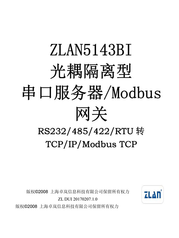 ZLAN5143BI 是一款 RS485/422 串口帶隔離的串口服務(wù)器