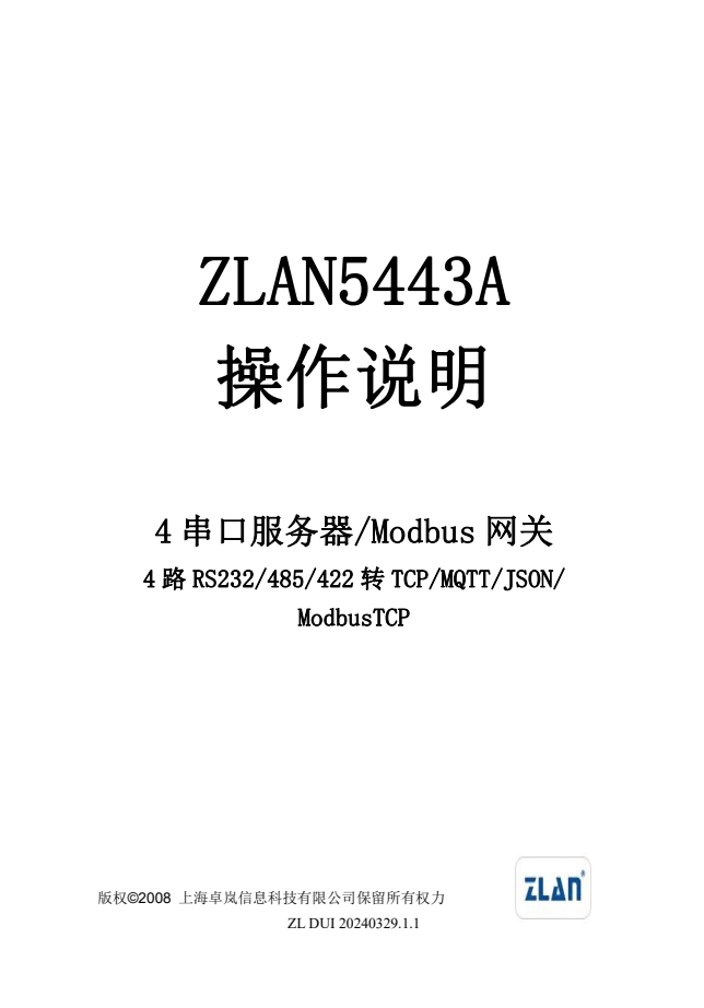 ZLAN5443A是上海卓嵐信息科技有限公司開發(fā)的新一代4串口服務(wù)器。可以實(shí)現(xiàn)4路串口數(shù)據(jù)轉(zhuǎn)TCP/IP,支持兩個(gè)10M/100M以太網(wǎng)口。ZLAN5443A支持Modbus TCP轉(zhuǎn)Modbus RTU的Modbus網(wǎng)關(guān)功能。Modbus網(wǎng)關(guān)支持多個(gè)Modbus 客戶端連接上同時(shí)讀取數(shù)據(jù),即“多主機(jī)”功能。