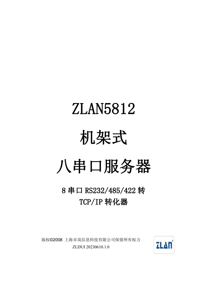 ZLAN5812串口服務(wù)器是上海卓嵐信息科技有限公司開發(fā)的一款機(jī)架式8串口RS232/485/422和TCP/IP之間協(xié)議轉(zhuǎn)化器。ZLAN5812支持8個RS232串口、16個RS485、RS422串口,且RS232支持流控。通過一根網(wǎng)線連接到ZLAN5812,實現(xiàn)8個串口同時全雙工工作,每一個串口的功能和單串口服務(wù)器ZLAN2100/3100相同。每路串口可作為TCP服務(wù)器、TCP客戶端、UDP、UDP組播。ZLAN5G00A是多串口聯(lián)網(wǎng)的理想選擇。