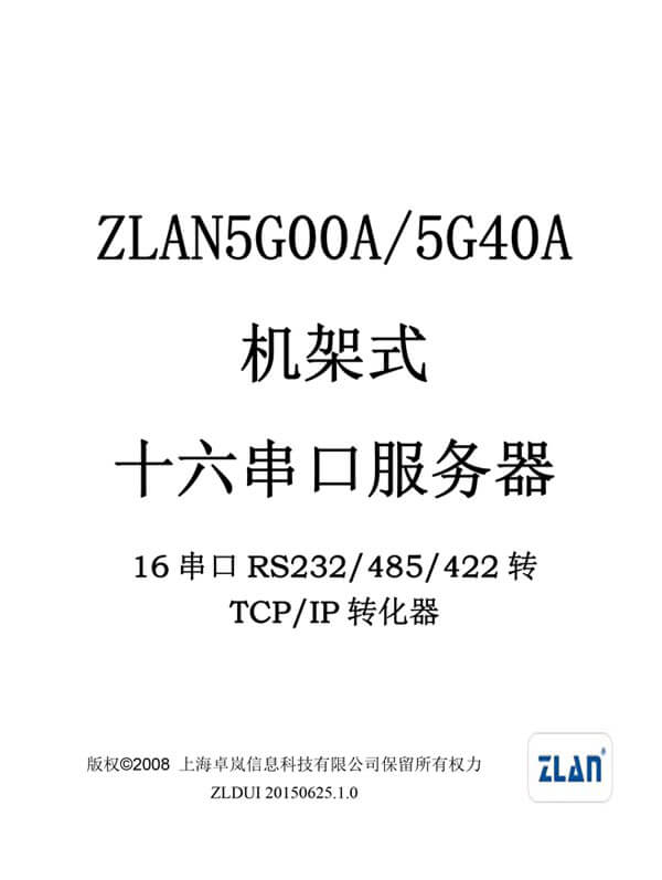 ZLAN5G00A串口服務(wù)器是上海卓嵐信息科技有限公司開發(fā)的一款機(jī)架式16串口RS232/485/422和TCP/IP之間協(xié)議轉(zhuǎn)化器。ZLAN5G00A支持16個(gè)RS232串口、16個(gè)RS485、RS422串口,且RS232支持流控。通過(guò)一根網(wǎng)線連接到ZLAN5G00A,實(shí)現(xiàn)16個(gè)串口同時(shí)全雙工工作,每一個(gè)串口的功能和單串口服務(wù)器ZLAN2100/3100相同。每路串口可作為TCP服務(wù)器、TCP客戶端、UDP、UDP組播。ZLAN5G00A是多串口聯(lián)網(wǎng)的理想選擇。