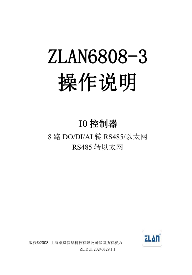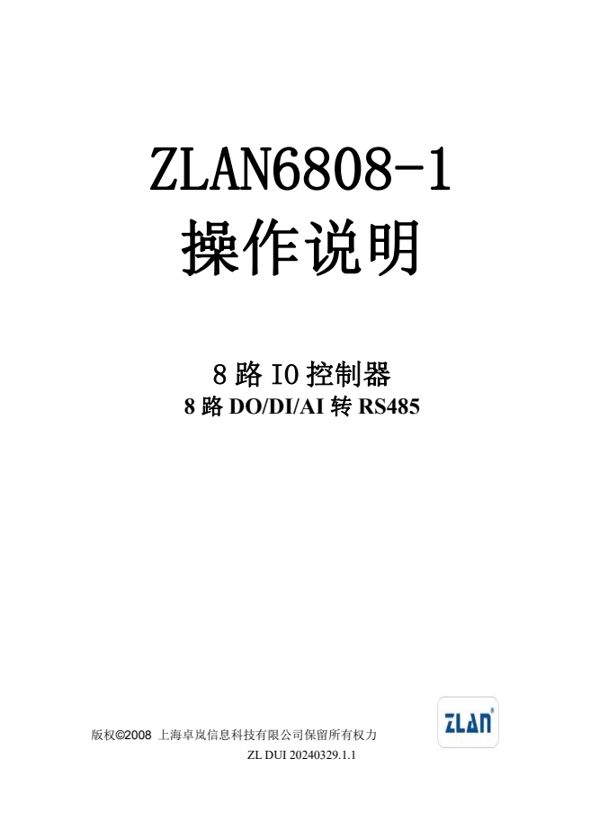 ZLAN6808是上海卓嵐信息科技有限公司推出的8路遠(yuǎn)程IO控制器,支持8路DI/DO/AI,即數(shù)字量輸入、繼電器輸出、模擬量輸入(含電壓量、電流量)。同時(shí)支持串口服務(wù)器功能,在RS485接口上掛接第三方的RS485采集器、控制器,實(shí)現(xiàn)遠(yuǎn)程控制。