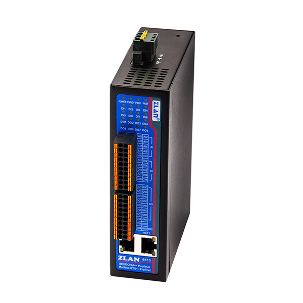 ZLAN6813是上海卓嵐繼Modbus IO控制器ZLAN6808系列后新推出的一款Profinet協(xié)議的IO控制器,其核心功能是通過Profinet協(xié)議讀取DI開關(guān)量狀態(tài)、AI模擬量數(shù)值以及控制DO開關(guān)量輸出。ZLAN6813同時還支持一路RS485接口,可以接入Modbus RTU從站實現(xiàn)Profinet和Modbus RTU兩種協(xié)議的轉(zhuǎn)換。我司提供專用的GSDML文件,便于用戶將ZLAN6813 與上位機(jī)進(jìn)行組態(tài)操作。
