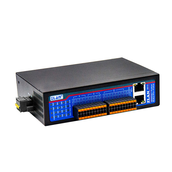 ZLAN6813的DI開關(guān)量輸入支持高低電平2種輸入方式,帶光耦隔離;DO為開關(guān)量輸出,支持輸出24V電壓;AI模擬量輸入默認(rèn)前4路0-5V,后四路4~20mA,ADC精度為16位。模擬量輸入可以根據(jù)需求出廠修改為5V、10V、4-20mA、電阻等類型。