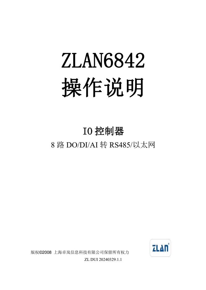 ZLAN6842、ZLAN6802、ZLAN6844是繼ZLAN6042之后上海卓嵐信息科技有限公司推出的8路遠(yuǎn)程IO控制器。其控制的路數(shù)從6042 的4路擴(kuò)展到8路,含有8路DI、8路DO,8路AI輸入。其中DI支持干節(jié)點和濕節(jié)點,帶光耦隔離;DO為繼電器輸出,具有5A 250VAC或5A 30VDC的控制能力;AI輸入中的前4路支持0~5V電壓量輸入,后4路支持4~20mA電流量輸入,精度10位。ZLAN6842、ZLAN6802、ZLAN6844分別支持以太網(wǎng)、RS485、Wifi這3種形式的通信方式。