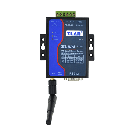 ZLAN7104是上海卓嵐繼ZLAN7100、ZLAN7142之后推出的又一款WIFI串口服務(wù)器。和ZLAN7142類似ZLAN7104也是一款高性能的WIFI串口服務(wù)器,但是7104的以太網(wǎng)和WIFI能夠同時使用,且配置也更加方便。7104定位在高穩(wěn)定性、豐富功能,適用于實時性、穩(wěn)定性高的工業(yè)領(lǐng)域,特別適合于PLC等設(shè)備的無線遠程監(jiān)控。