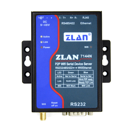 ZLAN7144N也是一款高性能的WIF串口服務(wù)器,他和ZLAN7104一樣的,以太網(wǎng)和WlFI能夠同時(shí)使用,且配置方便。高穩(wěn)定性、豐富功能,適用于實(shí)時(shí)性、穩(wěn)定性高的工業(yè)領(lǐng)域,特別適合于PLC等設(shè)備的無(wú)線遠(yuǎn)程監(jiān)控。該串口服務(wù)器可以方便地使得串口設(shè)備連接到WIFl無(wú)線網(wǎng)絡(luò),實(shí)現(xiàn)串口設(shè)備的無(wú)線化網(wǎng)絡(luò)升級(jí)。RS232接口支持全雙工、不間斷通信;R5485內(nèi)嵌485防雷保護(hù)該款設(shè)備含有ZLAN7104的所有功能,本款的亮點(diǎn)在于點(diǎn)對(duì)點(diǎn)通訊P2P,主要針對(duì)沒(méi)有公網(wǎng)IP或者花生殼內(nèi)網(wǎng)版做域名解析的情況下應(yīng)用。這款只需要直接添加設(shè)備I D號(hào)就可以通訊,軟件會(huì)把全部網(wǎng)絡(luò)都打通,通訊非常方便。