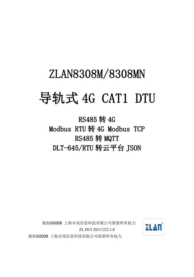 ZLAN8308M不僅具有注冊包、心跳包、還具有較新的MQTT、Modbus RTU轉(zhuǎn)JSON對接云服務(wù)器等功能,具有高速傳輸、低延時、支持新技術(shù)等特點。