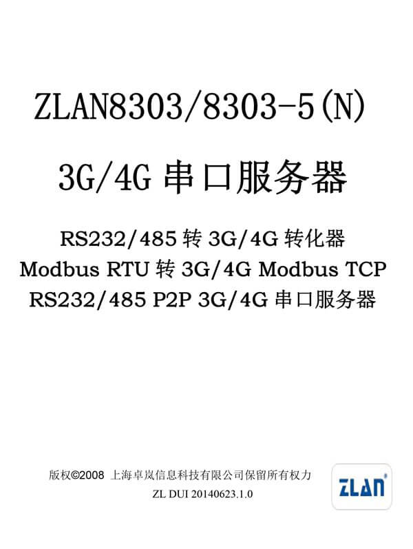 ZLAN8303系列是上海卓嵐繼ZLAN8100之后推出的3G/4G聯(lián)網(wǎng)解決方案。其中包含有4種子型號(hào),分別是支持電信卡3G型號(hào)8303、支持Modbus TCP網(wǎng)關(guān)功能的8343、支持移動(dòng)聯(lián)通卡3G/4G型號(hào)8303-5、支持P2P功能的8303N。Modbus TCP和P2P功能可以附加在8303或者8303-5型號(hào)上,比如ZLAN8343N-5。