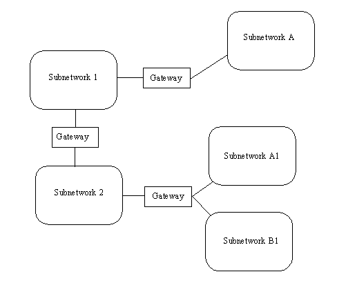 Figure 2.3. Gateways act as relays between subnetworks.