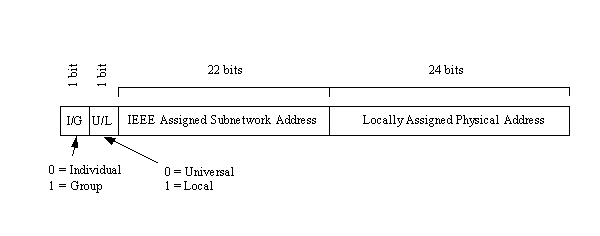 The remaining 22 bits make up the physical address of the subnetwork, as assigned by the IEEE. The second set of 24 bits identifies local network addresses and is administered locally. If an organization runs out of physical addresses (there are about 16 million addresses possible from 24 bits), the IEEE has the capacity to assign a second subnetwork address.